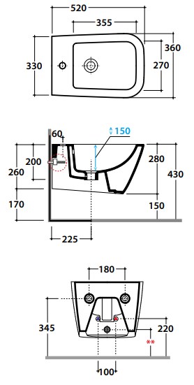 Биде подвесное Globo STONE STS10SK купить в Бресте, цена