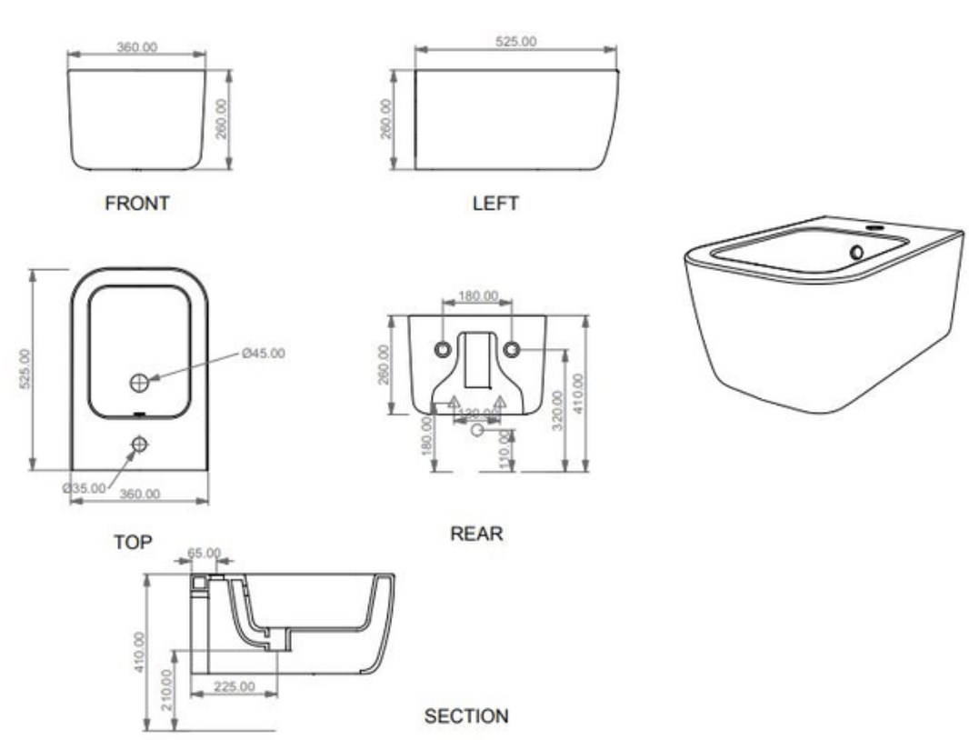 Биде подвесное GSG Ceramic Design Brio BRBISO020, цемент