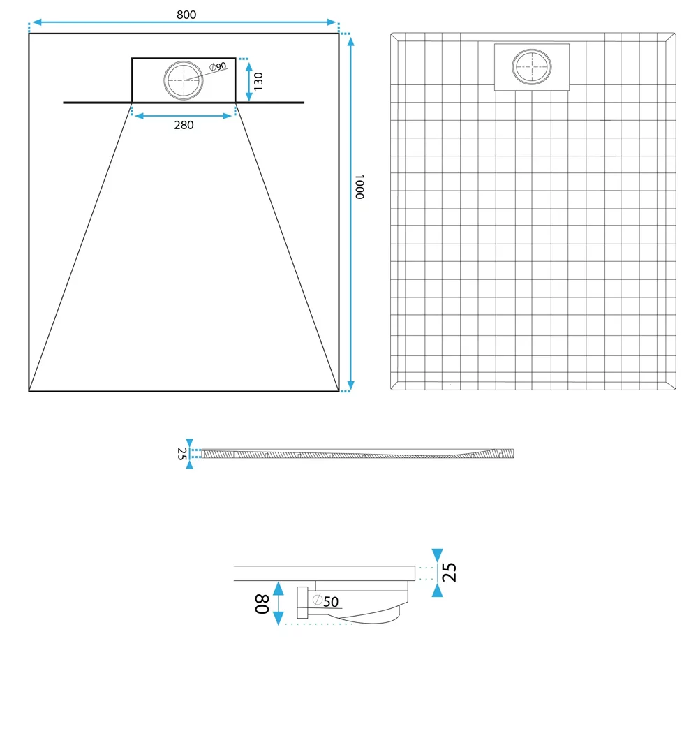 Душевой поддон Rea Bazalt Carrara White 80x100 K7000