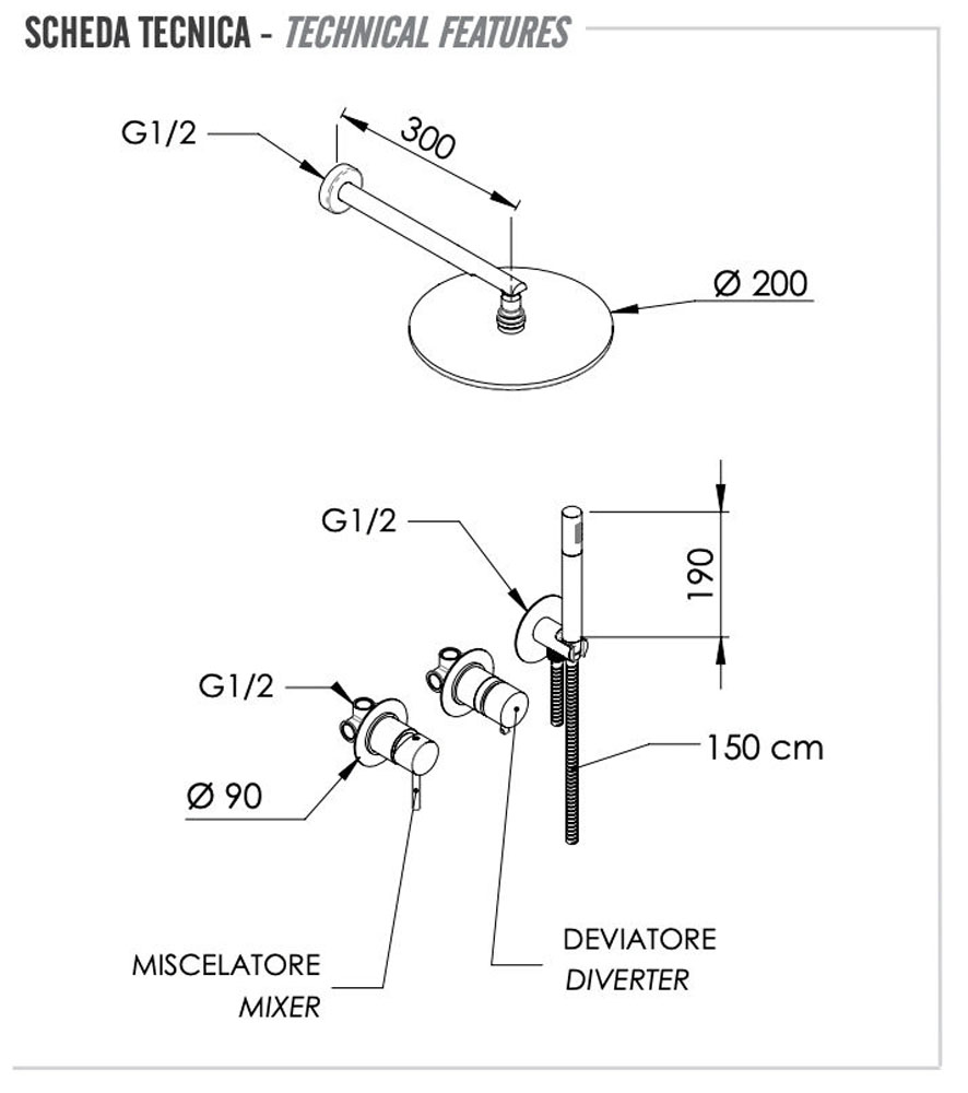 скрытая часть, ручной душ, шланг |