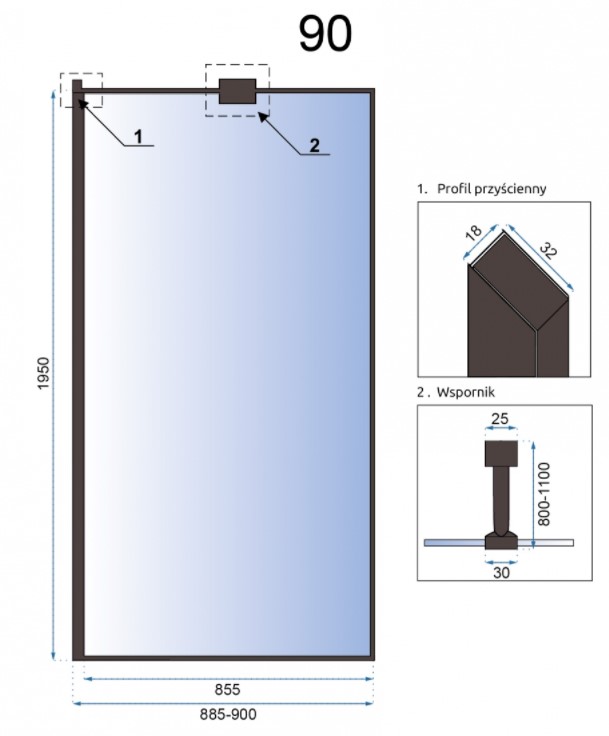 Душевая стенка Rea AERO 90x195 K7553 купить в Бресте, цена