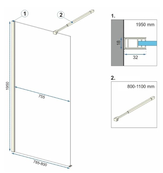 Душевая стенка Rea Aero Black 80x195 K7580 купить в Бресте, цена