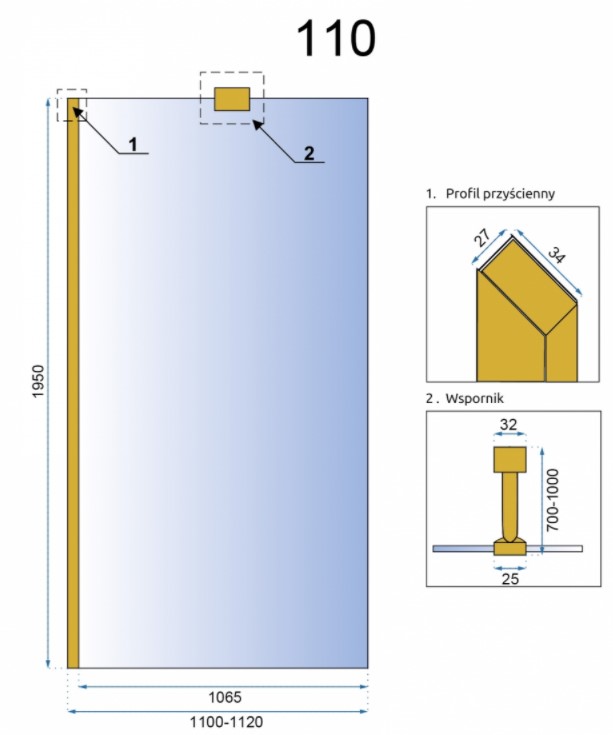 Душевая стенка Rea Aero Gold 110x195 K8441 купить в Бресте, цена
