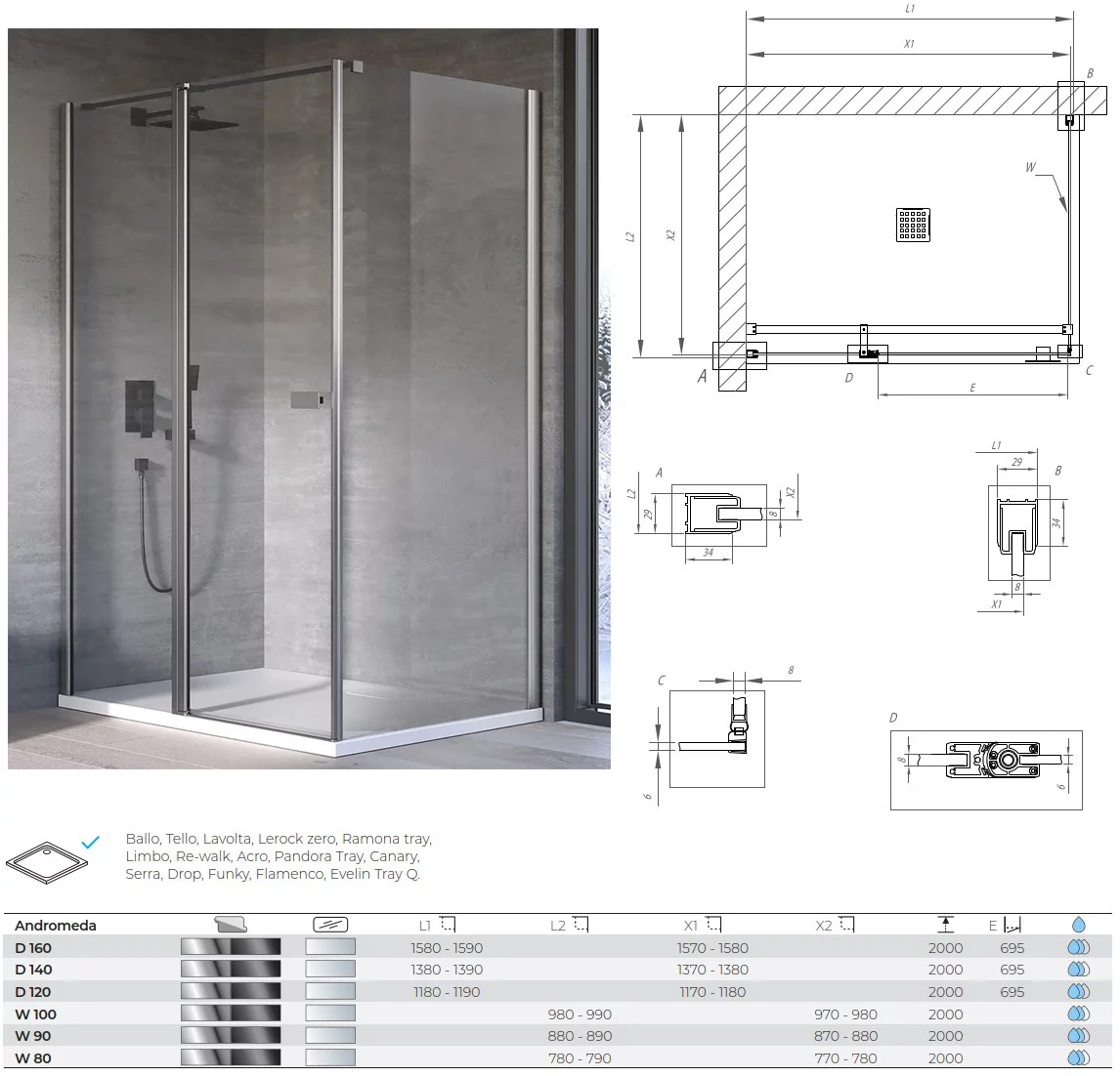 Душевая дверь Kolpa-San Andromeda D 120 silver brill transparent 516540 купить в Бресте, цена