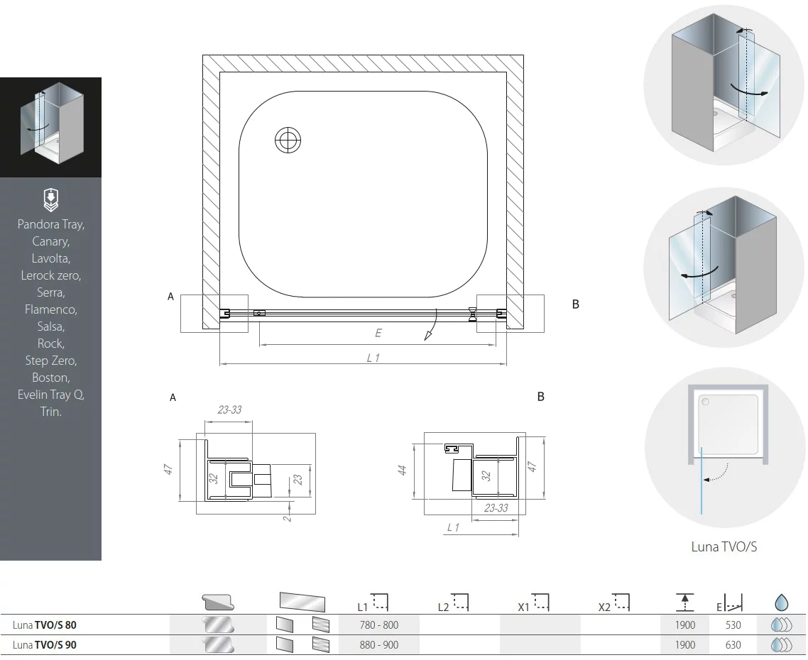 Душевая дверь Kolpa-San Luna TVO/S 90 silver transparent 534210 купить в Бресте, цена