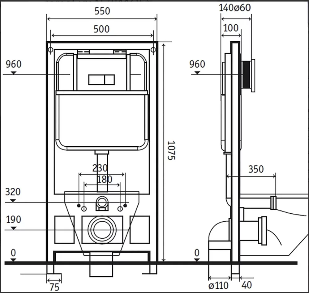 Эта инсталляция предлагает горизонтальное направление выпуска в стену, обеспечивая эффективное использование пространства в вашей ванной комнате. С легкостью устанавливается и обеспечивает надежную поддержку для вашего сантехнического оборудования.