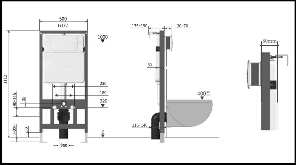С режимом слива воды на две кнопки (2-х режимный слив воды), эта инсталляция обеспечивает эффективное использование воды и экономию ресурсов. Межосевое расстояние составляет 230/180 мм, а монтажные размеры – 500 мм в ширину, 135-190 мм в глубину и 1075-1440 мм в высоту, что обеспечивает универсальную совместимость и легкость установки.