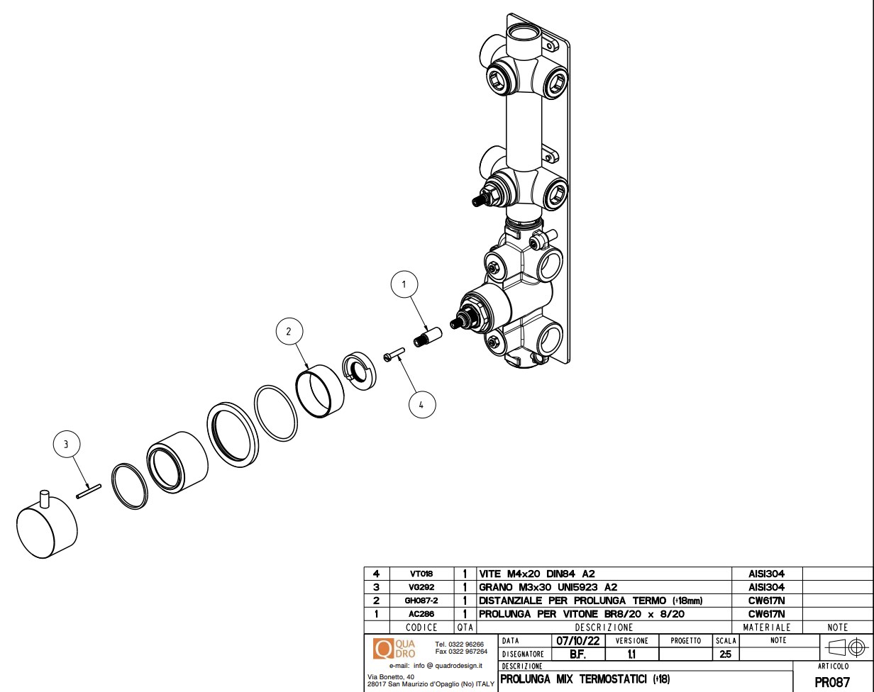 Удлинение для термостатического смесителя QuadroDesign PR087-AS
