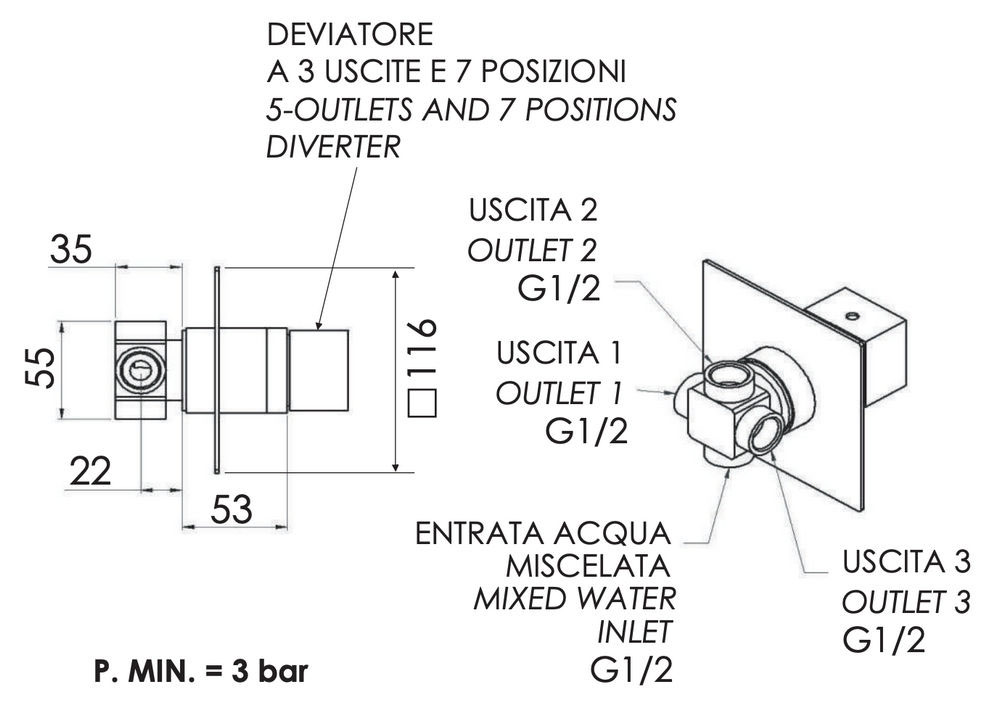 Дивертер на 3 выхода и 7 положений Remer Qubika Q93DEV7 купить в Бресте, цена