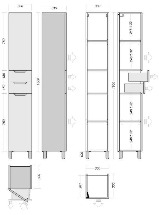 Пенал напольный Vela Верона 30Н2 (двери и ящики) петли левые RS633476 купить в Бресте, цена