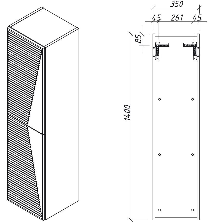 Шкаф-пенал подвесной с 2мя дверьми (правое открывание Tip-On)