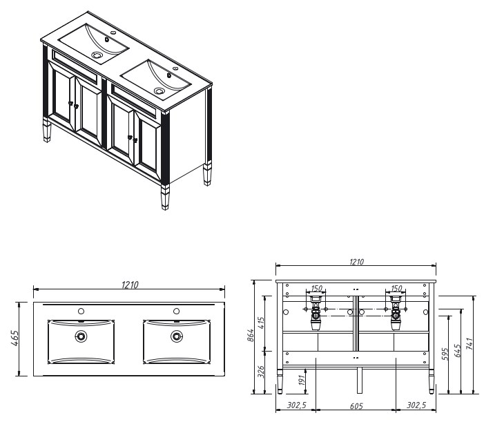 Тумба для двух рак.120 см, 4 двери, выпускается в отделках из реестра CONCEPT, кроме SF027 Бланж. Варианты раковин: 9120dd