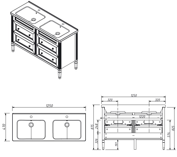 Тумба для двух рак.125 см, 4 ящика, выпускается в отделках из реестра CONCEPT, кроме SF027 Бланж. Гармония-125
