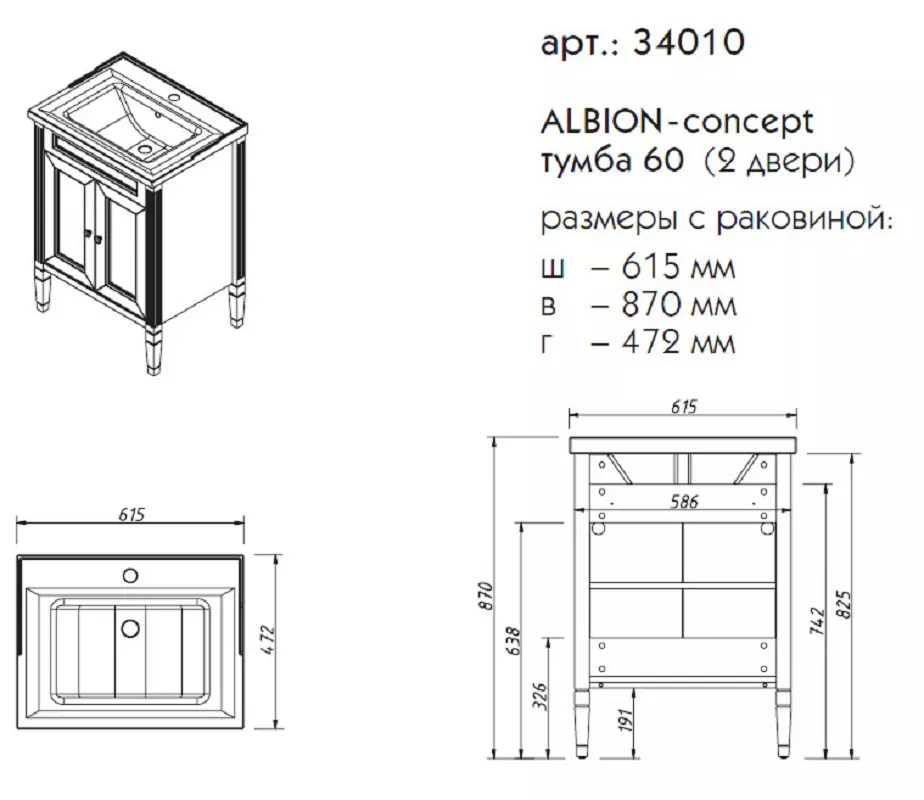 Тумба напольная Caprigo Albion Concept 60 34010-TP811 купить в Бресте, цена