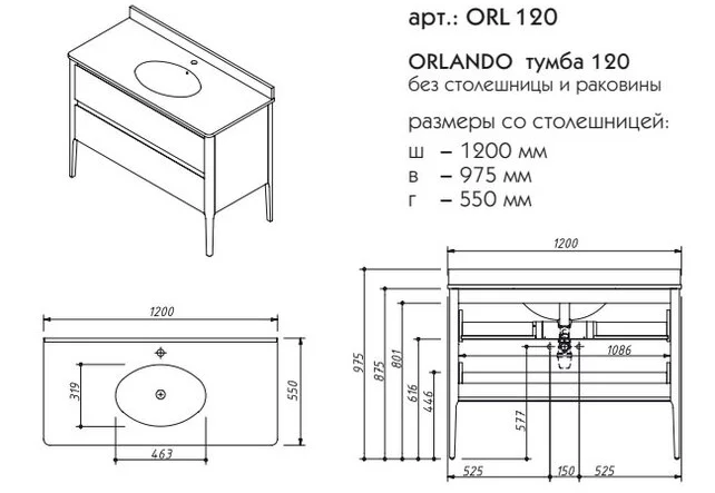 Тумба напольная Caprigo Orlando ORL120-B231/L817 купить в Бресте, цена