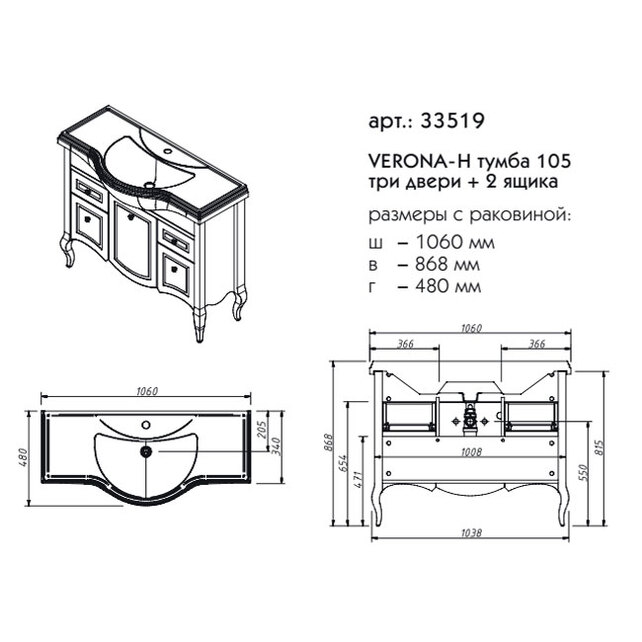 Тумба напольная Caprigo Verona 105 33519-TP817 купить в Бресте, цена