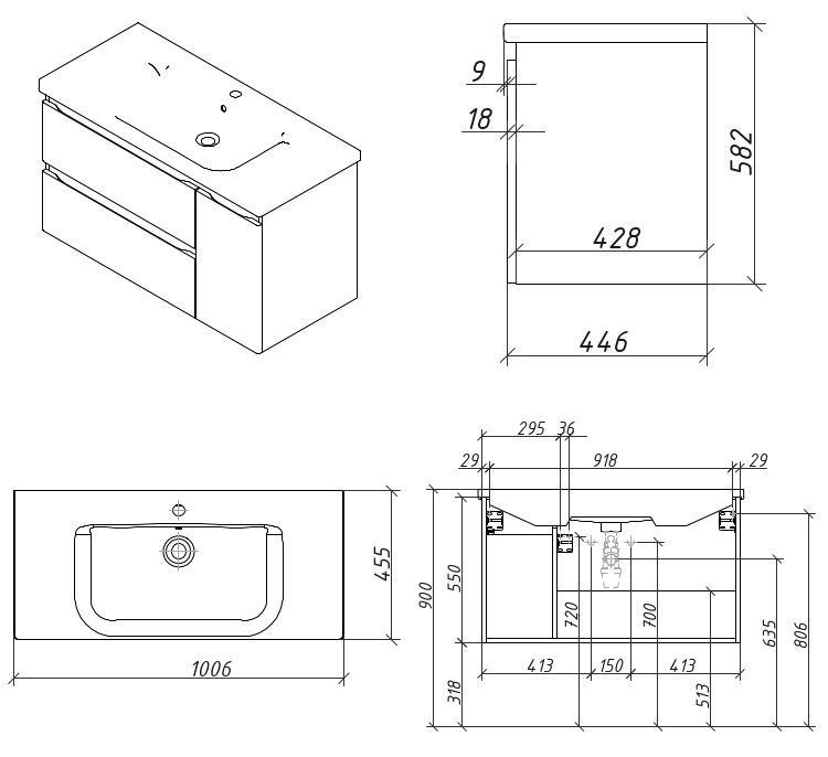 Тумба подвесная Caprigo Forte 100 36115R-SF046 купить в Бресте, цена