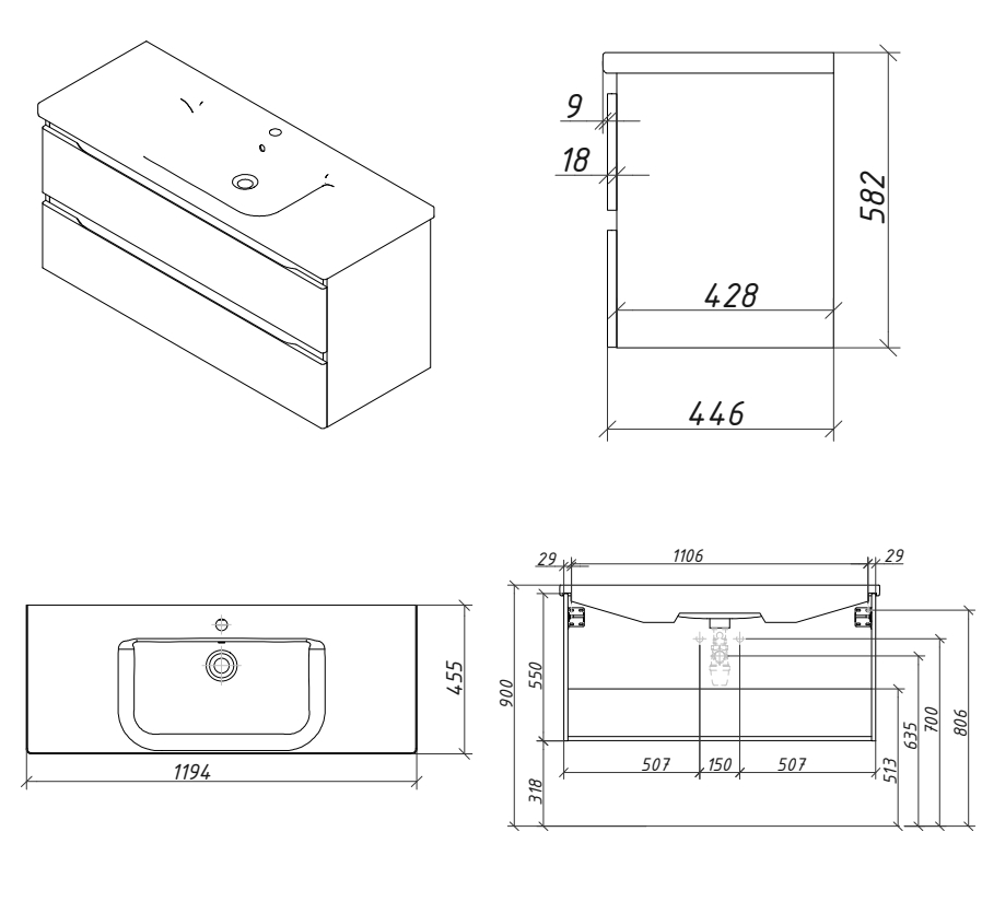 Тумба подвесная Caprigo Forte 120 36116-SF025 купить в Бресте, цена