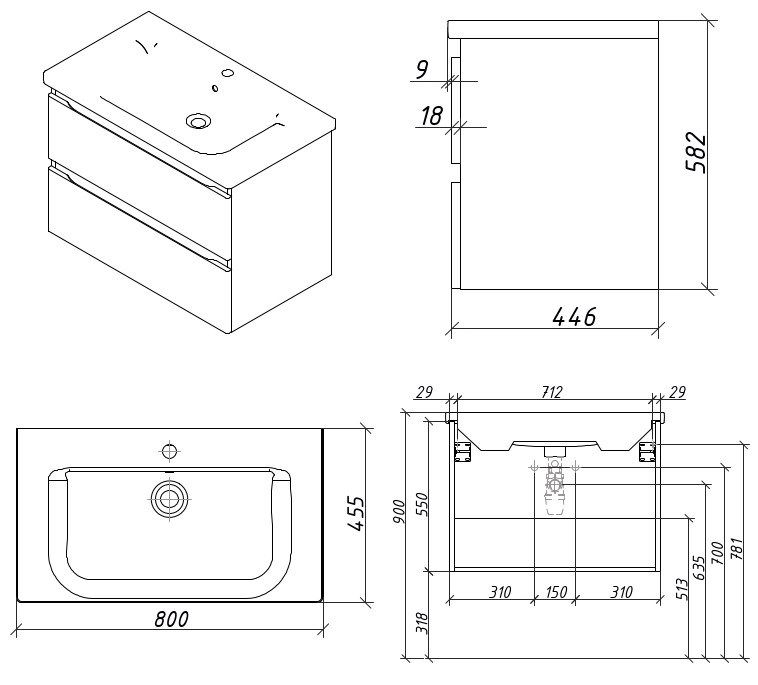Тумба подвесная Caprigo Forte 80 36112-SF027 купить в Бресте, цена