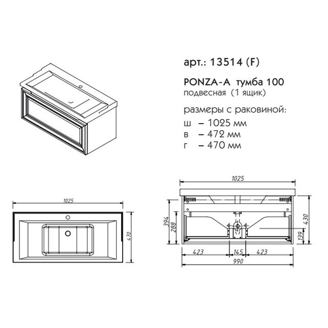 Тумба подвесная Caprigo Ponza 100 13514-B231