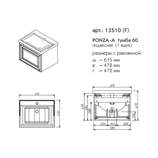 Тумба подвесная Caprigo Ponza 60 13510-B231 купить в Бресте, цена
