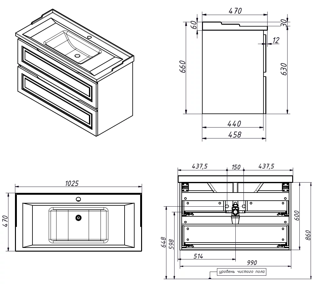Тумба подвесная Caprigo Wales 100 36014-SF025 купить в Бресте, цена