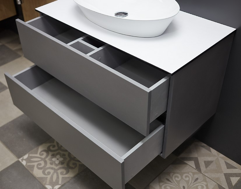Тумба Vela Каскад Голо 90П в сером матовом исполнении — стиль и изыск. С возможностью подвески и современным дизайном, эта тумба добавит шарм в вашу ванную комнату.
