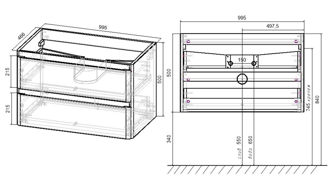 2 выкатных ящика |