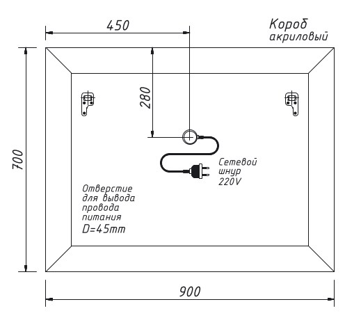 Фронтальная LED подсветка по периметру зеркала - световая полоса 20 мм. Акриловый короб, влагостойкое исполнение. Димируемый сенсорный выключатель в виде логотипа CAPRIGO