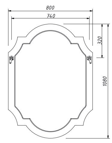 Зеркало фигурное в раме МДФ. Полотно без фацета. Выпускается в отделке Эмалями из реестра CLASSIC без патинирования.