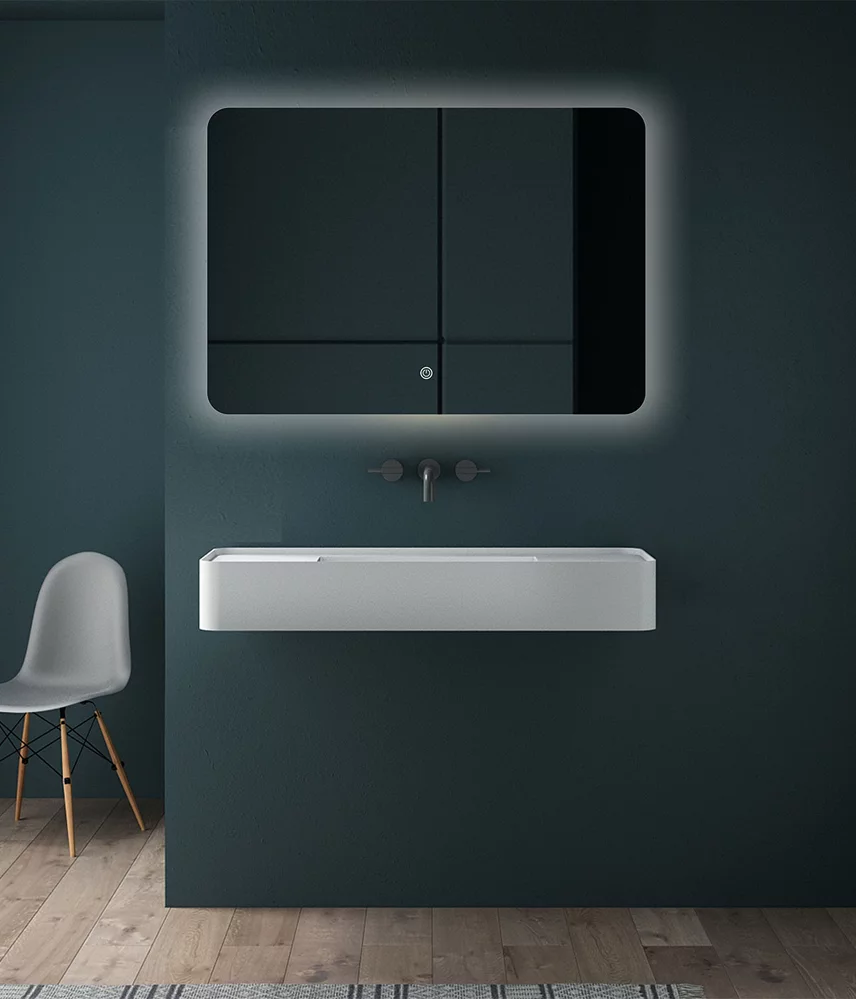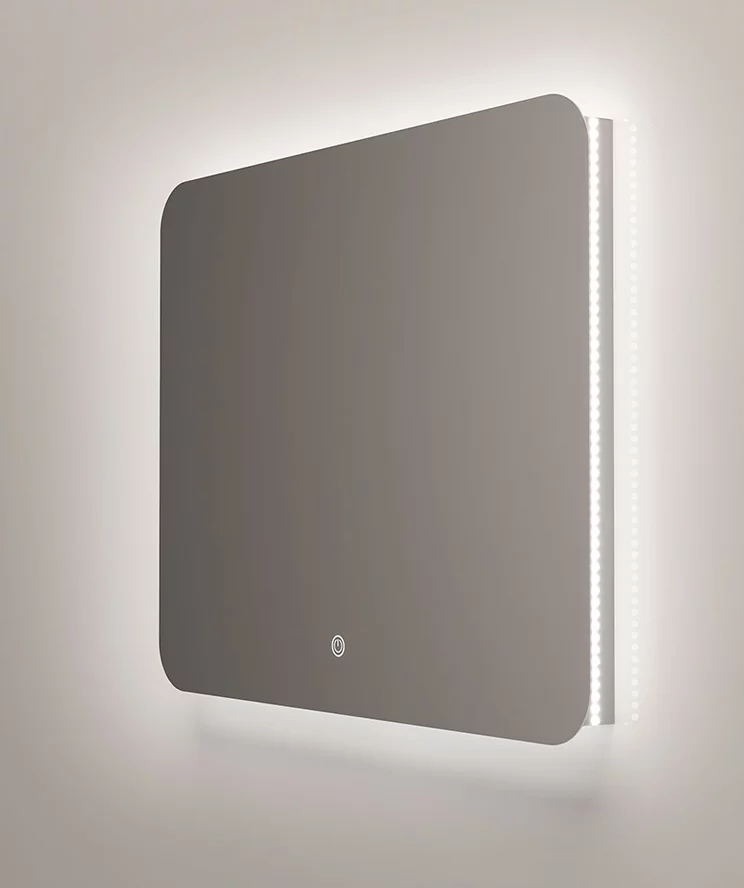 LED Подсветка: Зеркало оборудовано LED-подсветкой, создающей приятное освещение в ванной комнате.