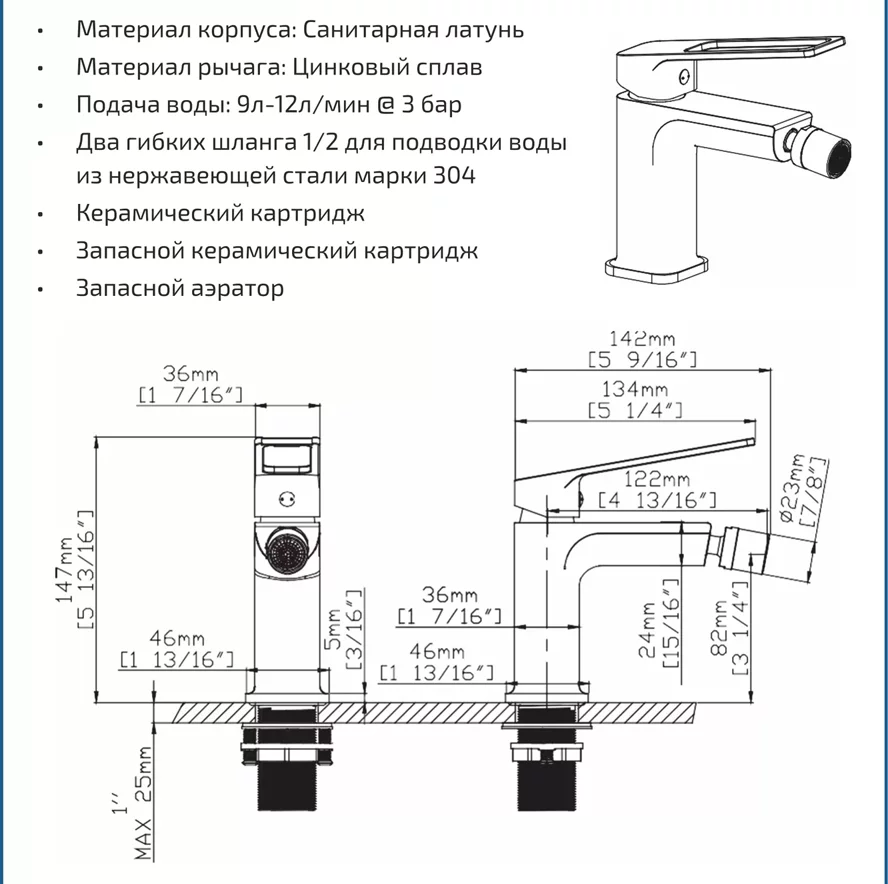 Смеситель для биде Gid Niagara L057-CH-B
