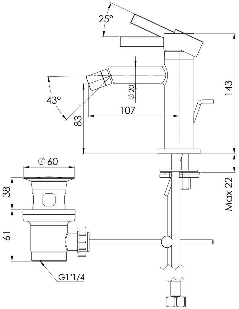 Смеситель для биде Remer Metrica MC20