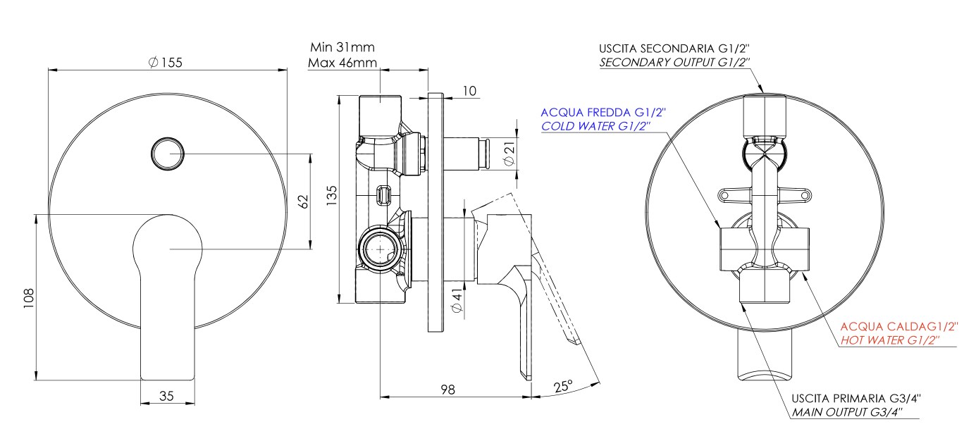 Смеситель для душа Mariani Kali B14173KL