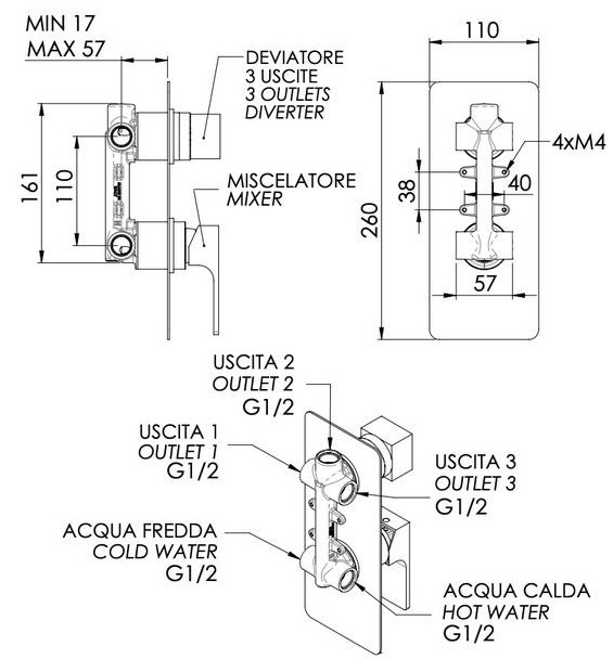 Смеситель для душа Remer Absolute AU93BG, золото брашированное купить в Бресте, цена