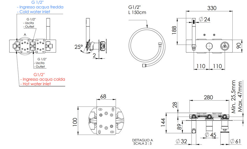 скрытая часть, ручной душ, шланг |