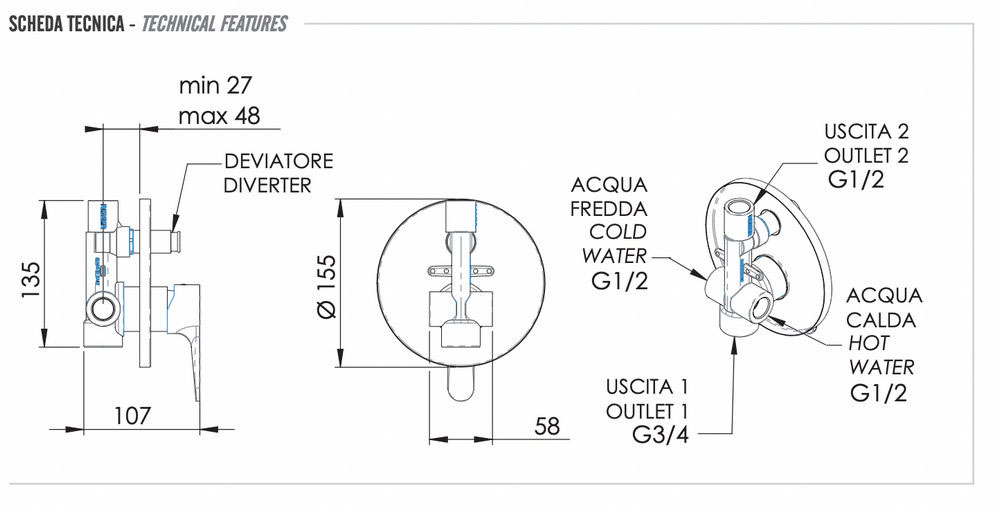 Смеситель для душа Remer Winner W09