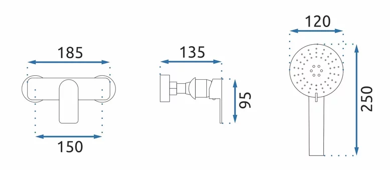 ручной душ, шланг, держатель для лейки |