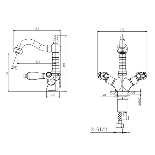 Смеситель для умывальника Caprigo Adria-classic 03-526-CRM