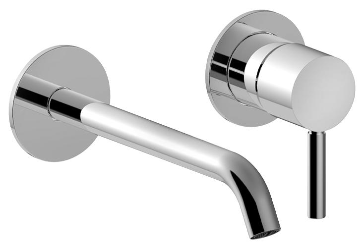 5002G913B NOSTROMO SMALL Смеситель из стены для раковины вылет 20 см Ручка цилиндрической формы с рычагом ограничитель потока воды до 5 л/мин при 3 бар впуски 1/2'' БЕЗ ДОННОГО КЛАПАНА Наружная часть Хром