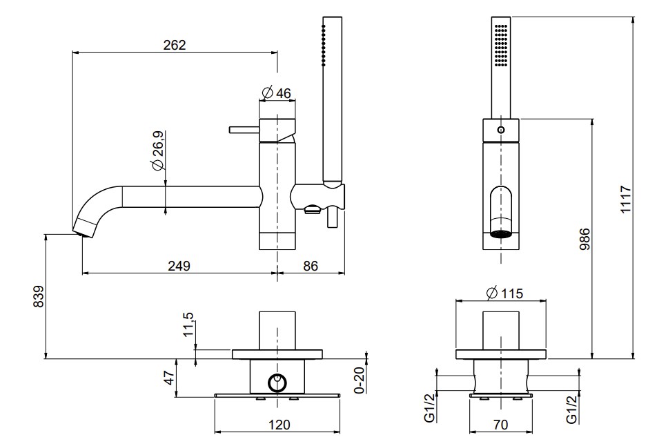 Смеситель для ванны QuadroDesign Source/Ottavo 1262AS/1