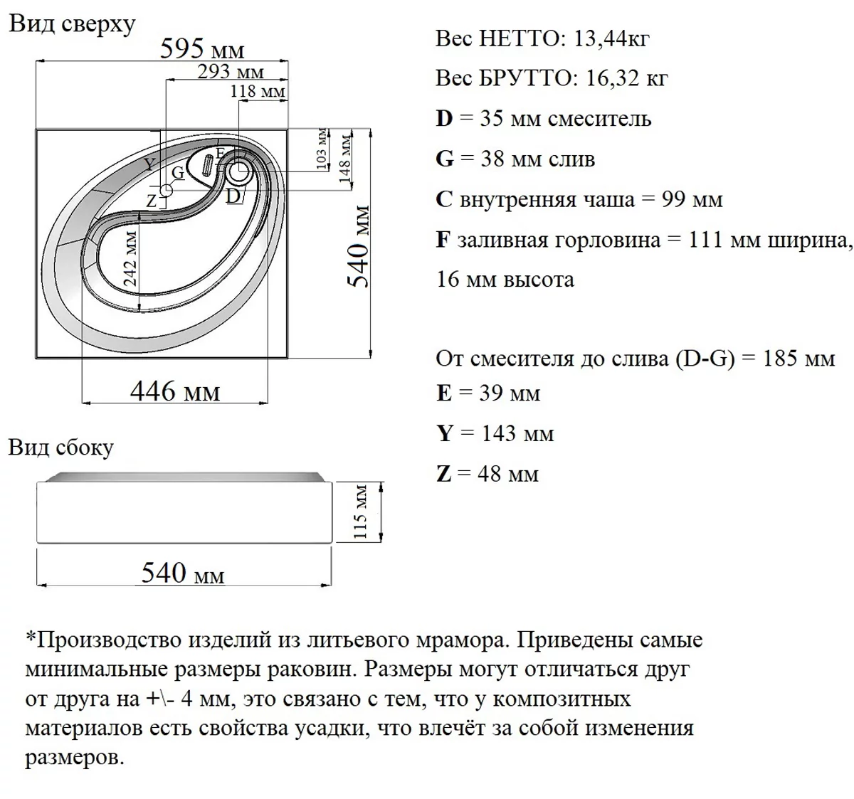 Диаметр сливного отверстия, мм