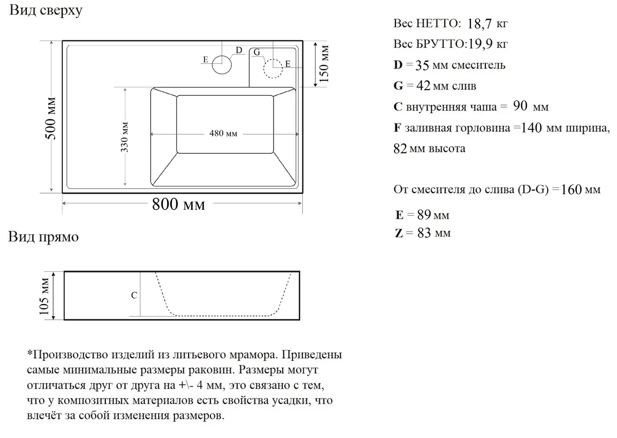 Диаметр сливного отверстия, мм