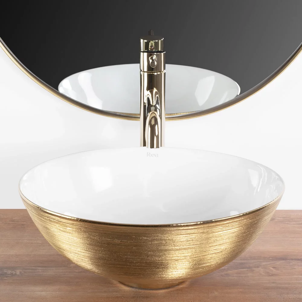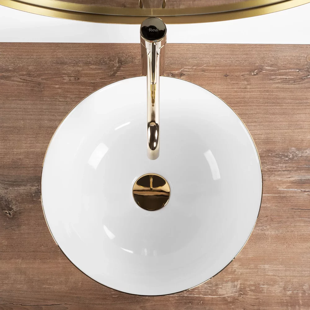 Умывальник Rea Stella gold brush white U9087