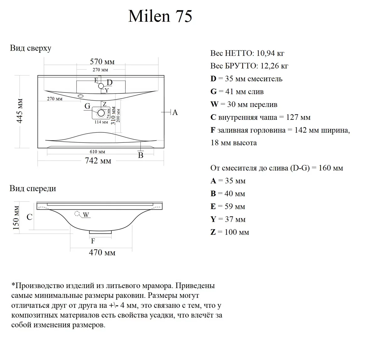 Умывальник Madera Milen 75 купить в Бресте, цена