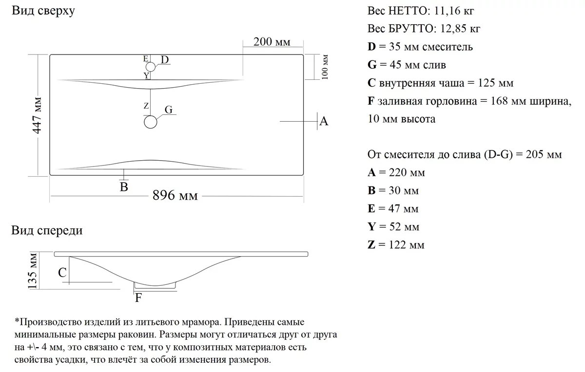 Диаметр сливного отверстия, мм
