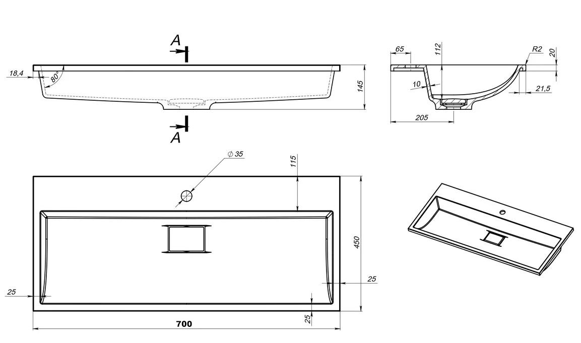 Умывальник Versalia Absolute 70