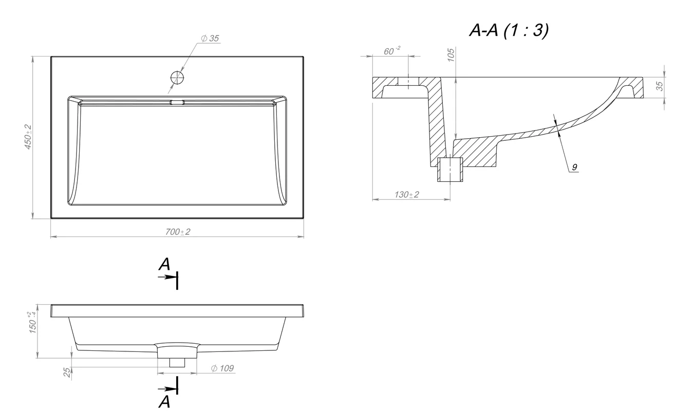 Умывальник Versalia Luxor 70 купить в Бресте, цена