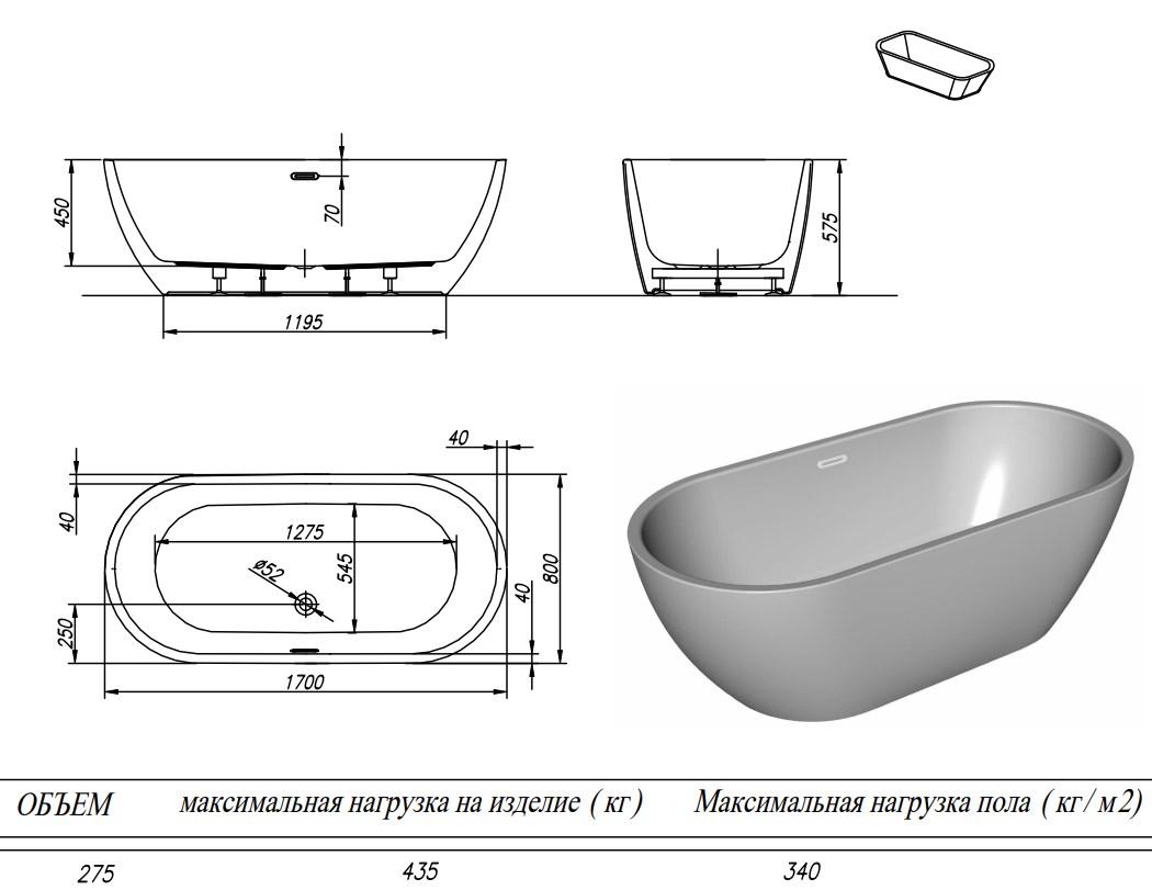 Ванна изготовлена из высококачественного акрила Lucite с толщиной листа не менее 4 мм, имеет безупречный внешний вид и долгий срок службы с гарантиями фабрики.