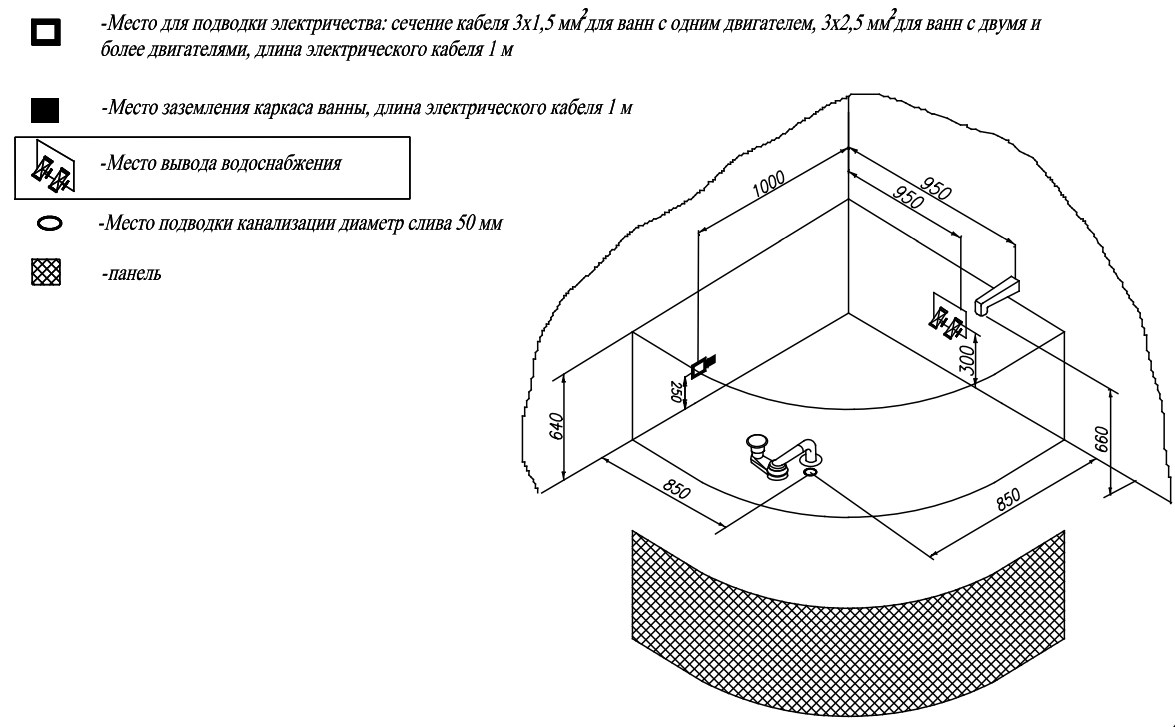 Ванна изготовлена из высококачественного акрила Lucite с толщиной листа не менее 4 мм, имеет безупречный внешний вид и долгий срок службы.